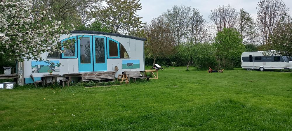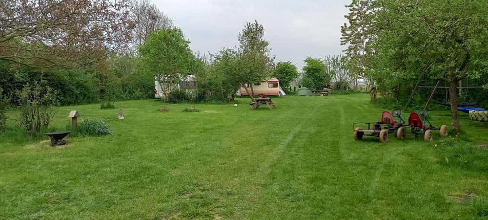 De camping ligt achter de boerderij tussen