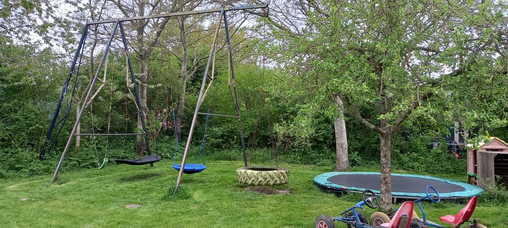 | Op het veld is eletriciteit, een waterkraantje en speel toestellen voor de kinderen. |