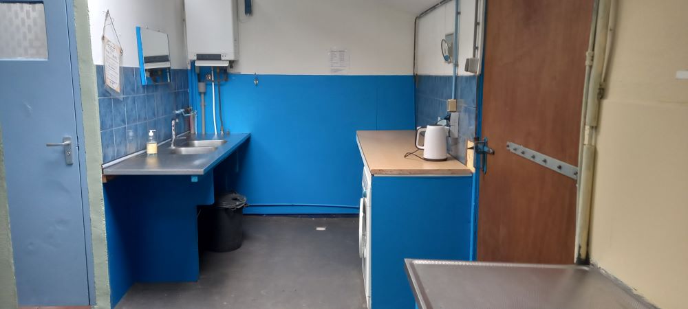 | Het Sanitair, één enkele douche, één twee dubbele douche, twee wc's, twee afwas aanrecht, wasmachine en waterkoker. |